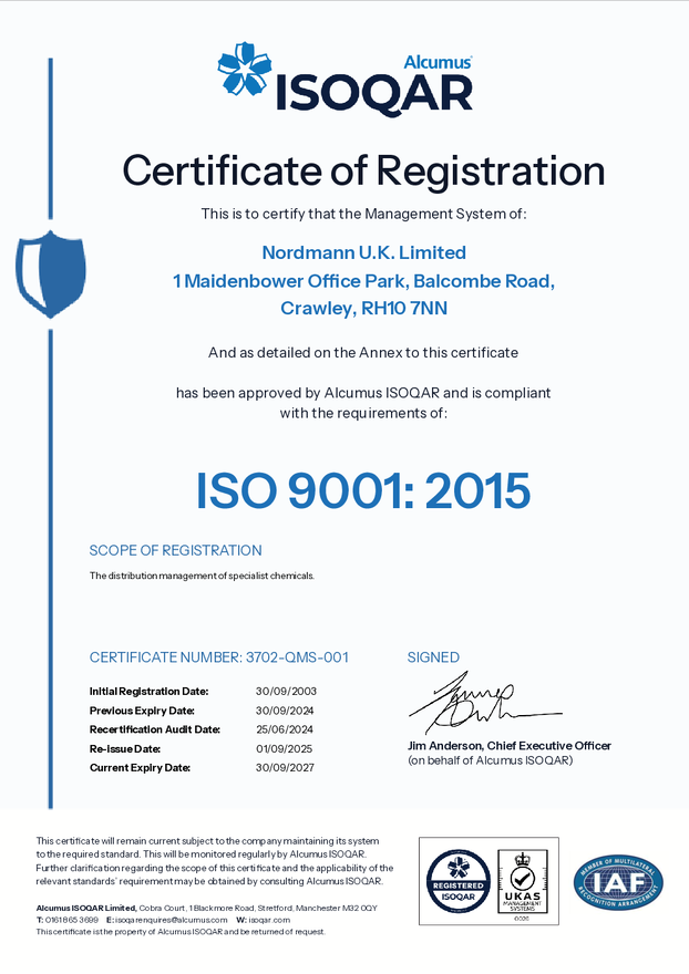 With its headquarters in Crawley, Nordmann UK Ltd. distributes specialty chemicals to manufacturers in the UK and Irish markets. We supply specialty chemicals for use in: