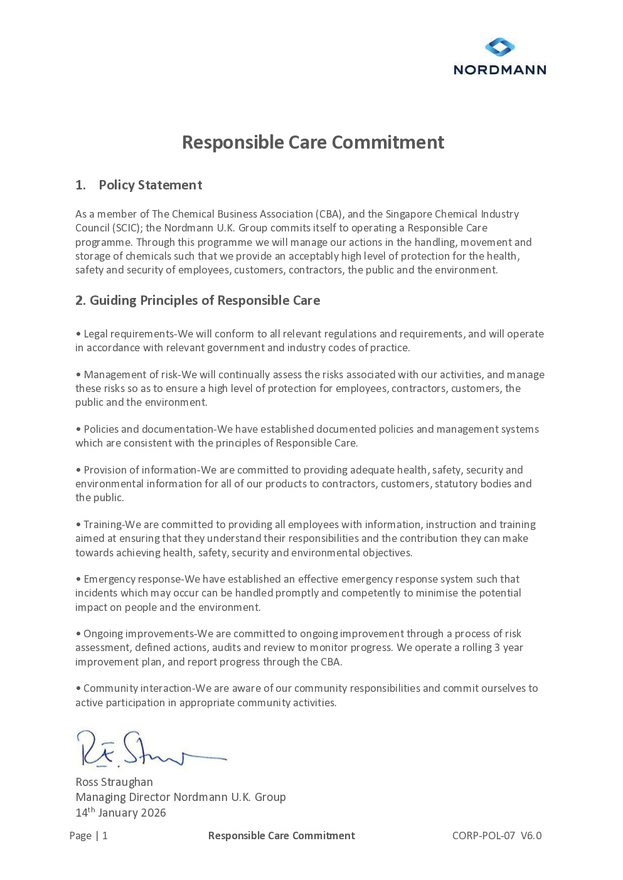 Responsible Distribution Commitment, Nordmann U.K. Group