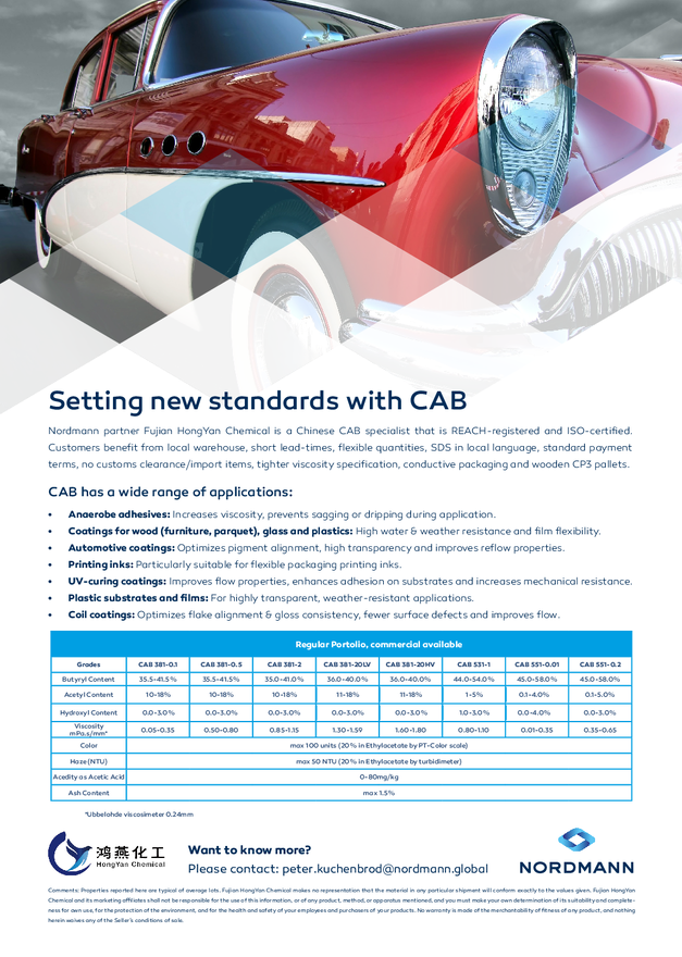 Ове карактеристике чине CAB компаније Fujian Hongyan Chemical идеалним избором за формулаторе који траже и перформансе и поузданост.
