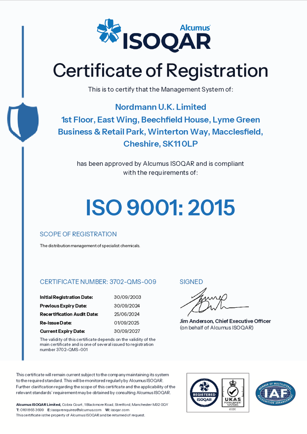 Quality & Environmental Management Systems Continuous Improvement Objectives 2025 (Nordmann UK)
